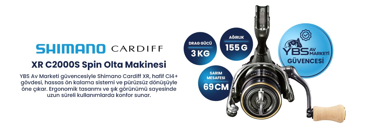 Shimano Cardiff XR, özellikle Area Trout (bölge alabalığı) ve Native Trout (yerel alabalık) balıkçılığı için tasarlanmış üst düzey bir spin makinesidir. Klasik görünümü, hafif yapısı ve hassas tasarımıyla ince alabalık kamışlarıyla mükemmel uyum sağlar. Ayrıca, en yeni ince çaplı misinalarla kullanım için özel olarak geliştirilmiş ultra hassas bir kalama sistemine sahiptir.