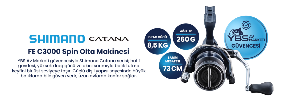 Uygun fiyatlı ama güvenilir bir makara arıyorsanız, Catana gözden kaçırmamanız gereken modellerden biridir. Zarif tasarımı ve performansıyla dikkat çeken bu seri, farklı avcılık teknikleri için idealdir. Catana’yı düşük veya orta fiyatlı bir Shimano kamışla eşleştirdiğinizde, hem sahip olmaktan gurur duyacağınız hem de uzun yıllar keyifle kullanabileceğiniz güçlü bir kombinasyon elde edersiniz.
