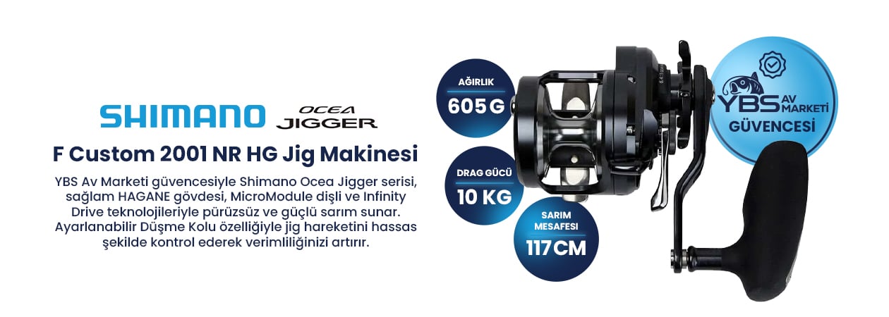 Shimano Ocea Jigger F Custom 2001 NR, yüksek hassasiyet, güç ve dayanıklılığıyla jig balıkçılığına yeni bir boyut kazandırır.